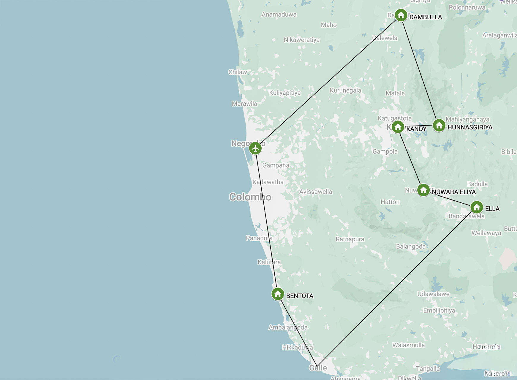Efter frukost och check-out från hotellet går resan vidare till Hunnasgiriya (ca 3 tim), där hotellet väntar med lugn och komfort. Här kan ni låta dagens intryck sjunka in, kanske ta en promenad i omgivningarna och njuta av atmosfären i den fridfulla bergsmiljön. Kvällen ger möjlighet till middag och vila.